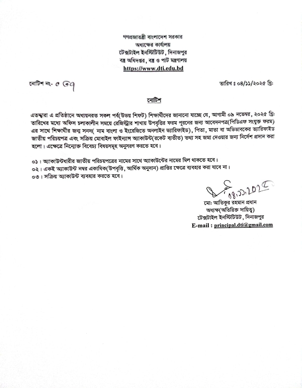 সকল পর্বের উপবৃত্তির ফরম পূরণের নোটিশ এবং আবেদন ফর্ম - নভেম্বর 2025