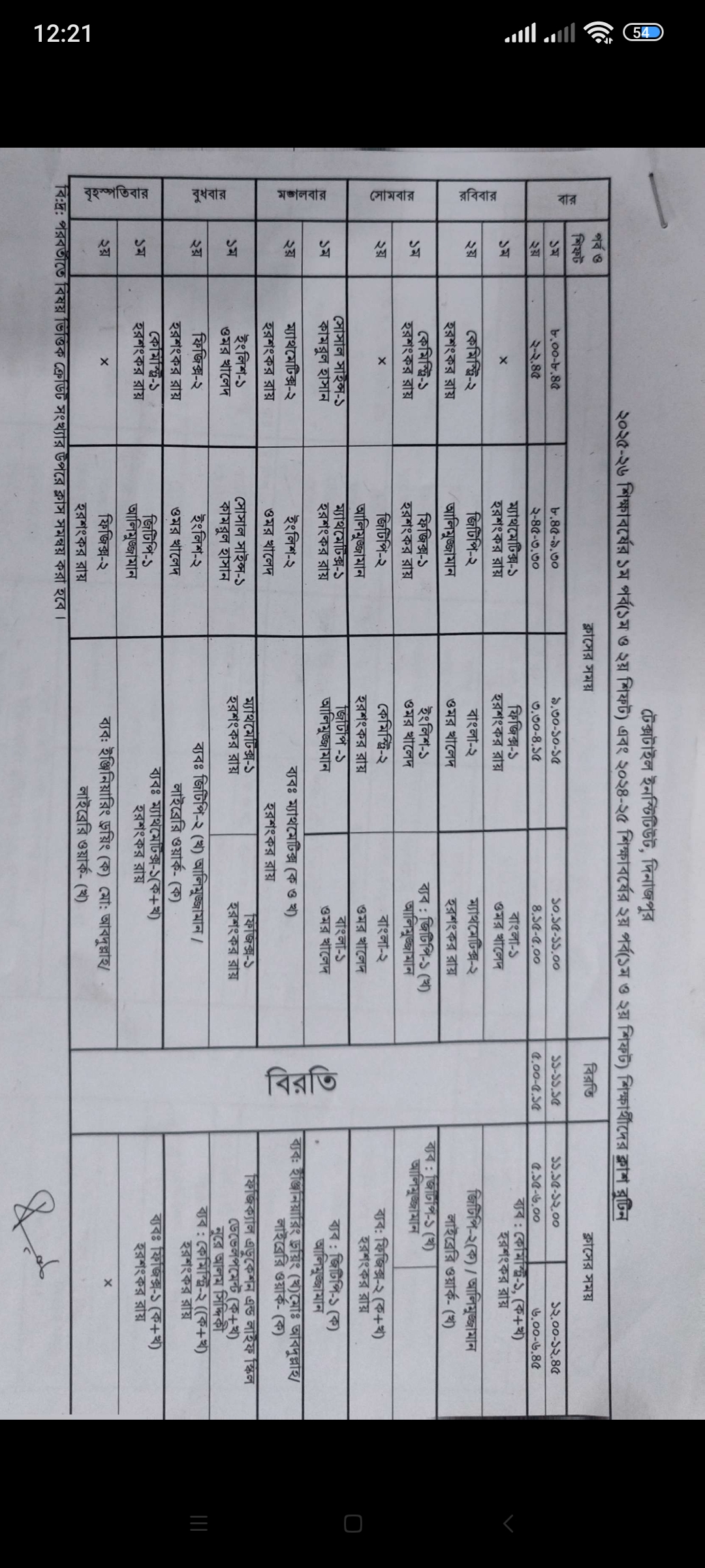 Class Routine 1st semester September 2025